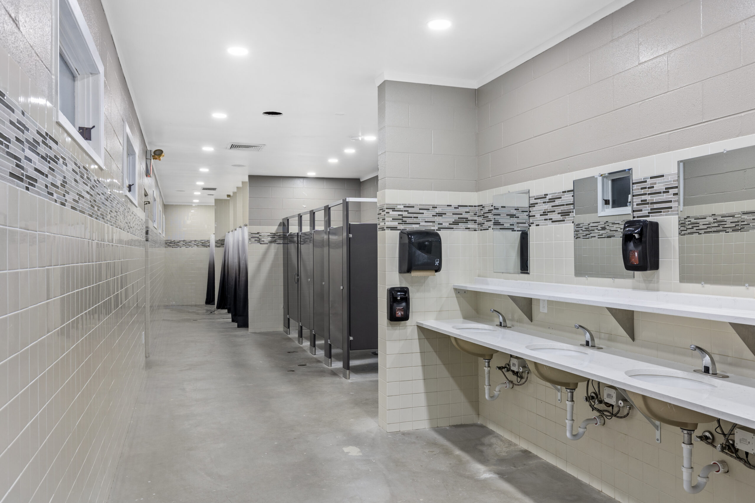 Enjoy showers and bathrooms located in the town square near our cabins.